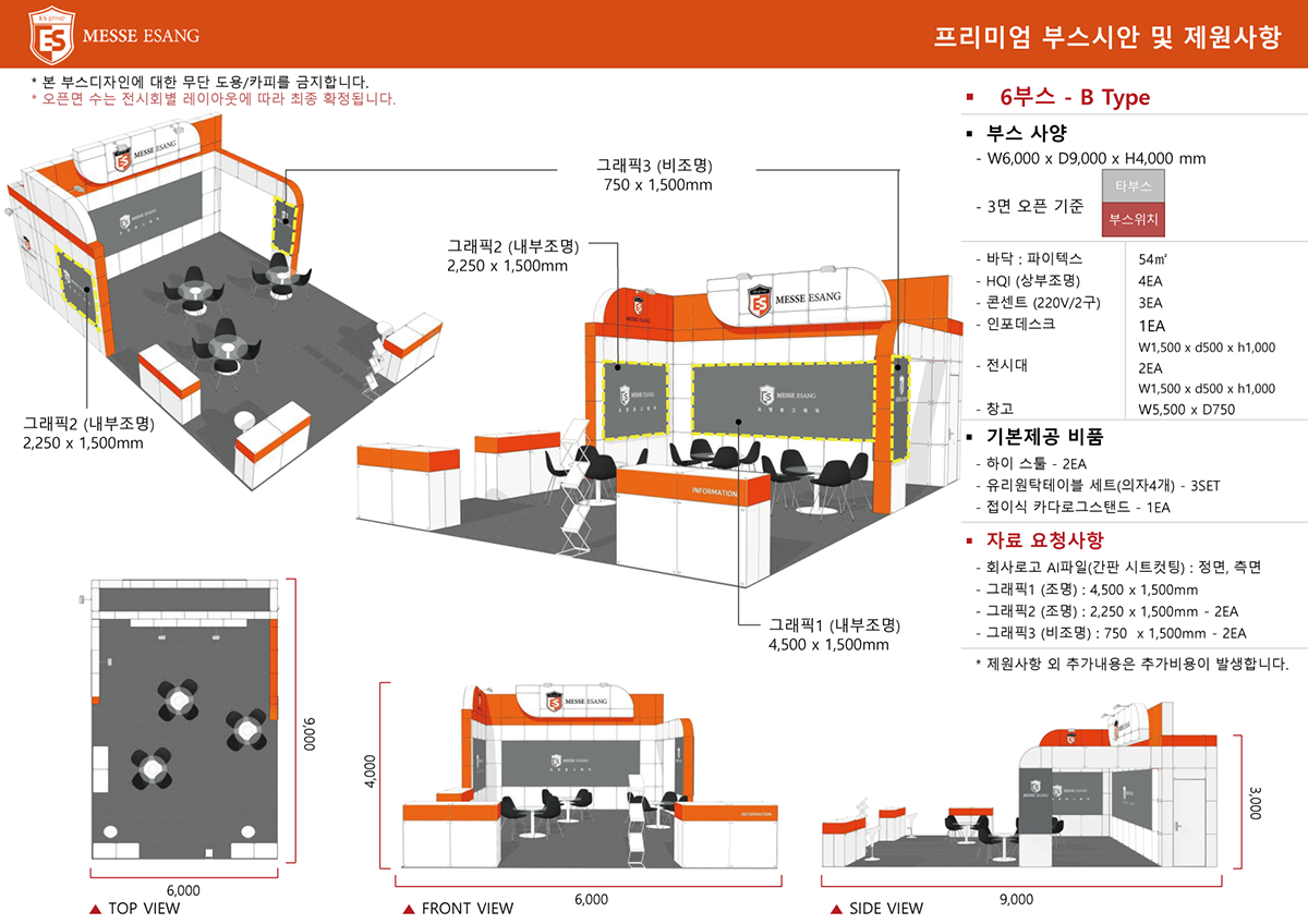 ![]() | 독립부스 | 1,150,000원 | 3m * 2m | - | 바닥 면적만 제공 (2부스 이상부터 신청 가능) |